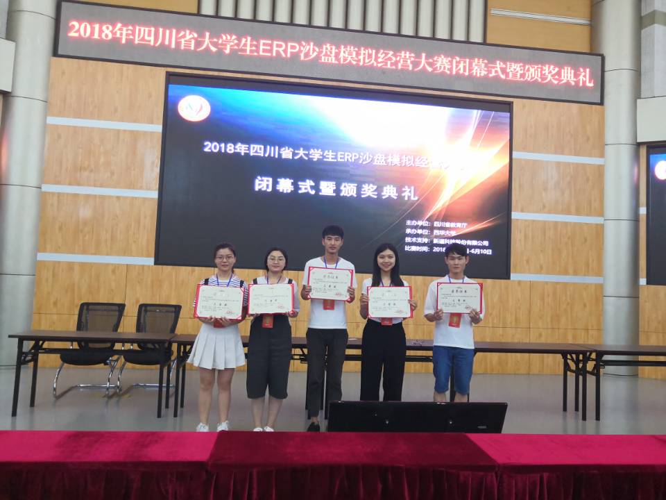 为顺应国家“开放创新、协同创新、大众创新”的总趋势,全面推动我省高等教育人才培育模式改革,孵化和培育面向未来的创新型人才,增强省内各大高校间的交流,6月8日至10日,会计学院刘春华、魏元方、许新亮老师带队,学生代表刘斯琪、卿龙飞、陈霞、胡小锋、李航参加了由四川省教育厅主办、西华大学承办的2018年四川省大学生ERP沙盘模拟经营大赛。来自成都文理学院、四川大学、西南财经大学等省内33所高等院校、165余名选手、54余名指导教师齐聚西华大学。稳操胜券,分秒必争!此次大赛中,各学校参赛队伍就“商战”这一赛项进行比拼,通过现场操作模拟平台,体验资源管理、财务管理、生产、营销等企业的经营环节,对企业的具体战略目标进行规划,实现了企业的模拟运营。在整个沙盘模拟操作过程中,参赛队伍积极运用所学,在有限的时间内完成目标,展示学生会计岗位通用技术和综合职业能力!