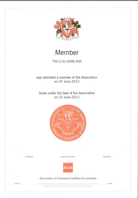 ACCA证书样本